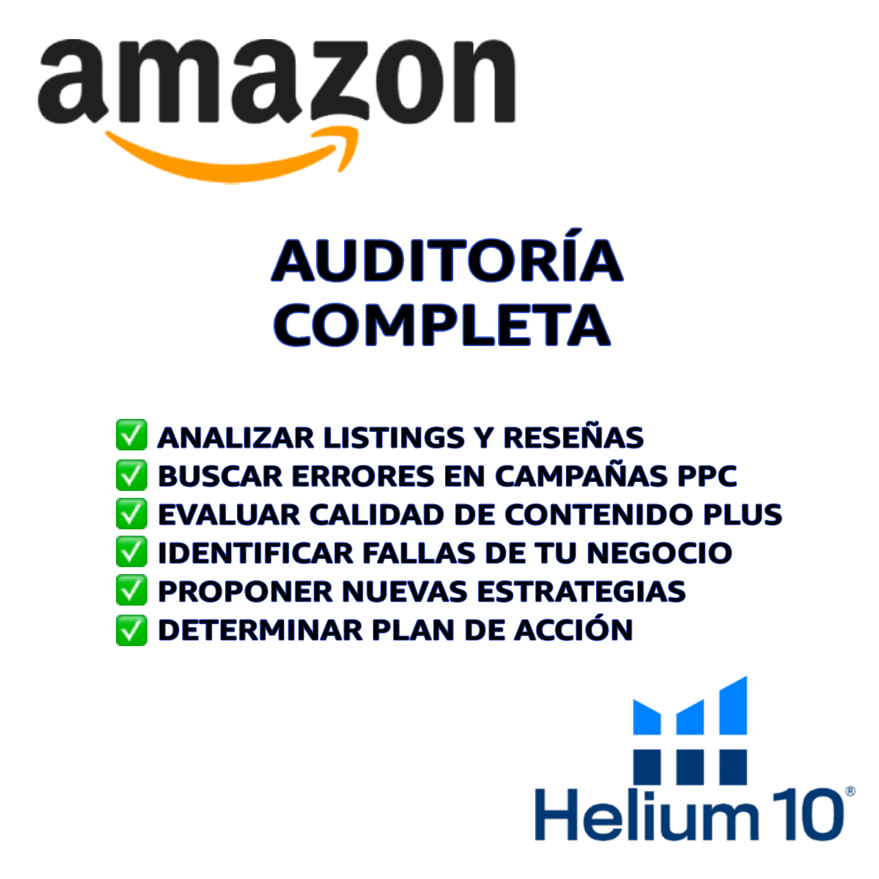 Auditoría completa de tu cuenta de Amazon, para identificar errores estratégicos, gastos innecesarios, listings mal confeccionados, Campañas PPC deficientes y oportunidades para mejorar el negocio. Utilizamos herramientas IA premium de Helium 10, pero también analizamos la información y ponemos en juego nuestro Expertise de 10 años haciendo negocios online para buscar soluciones pragmáticas que aumenten la rentabilidad de tus productos.
